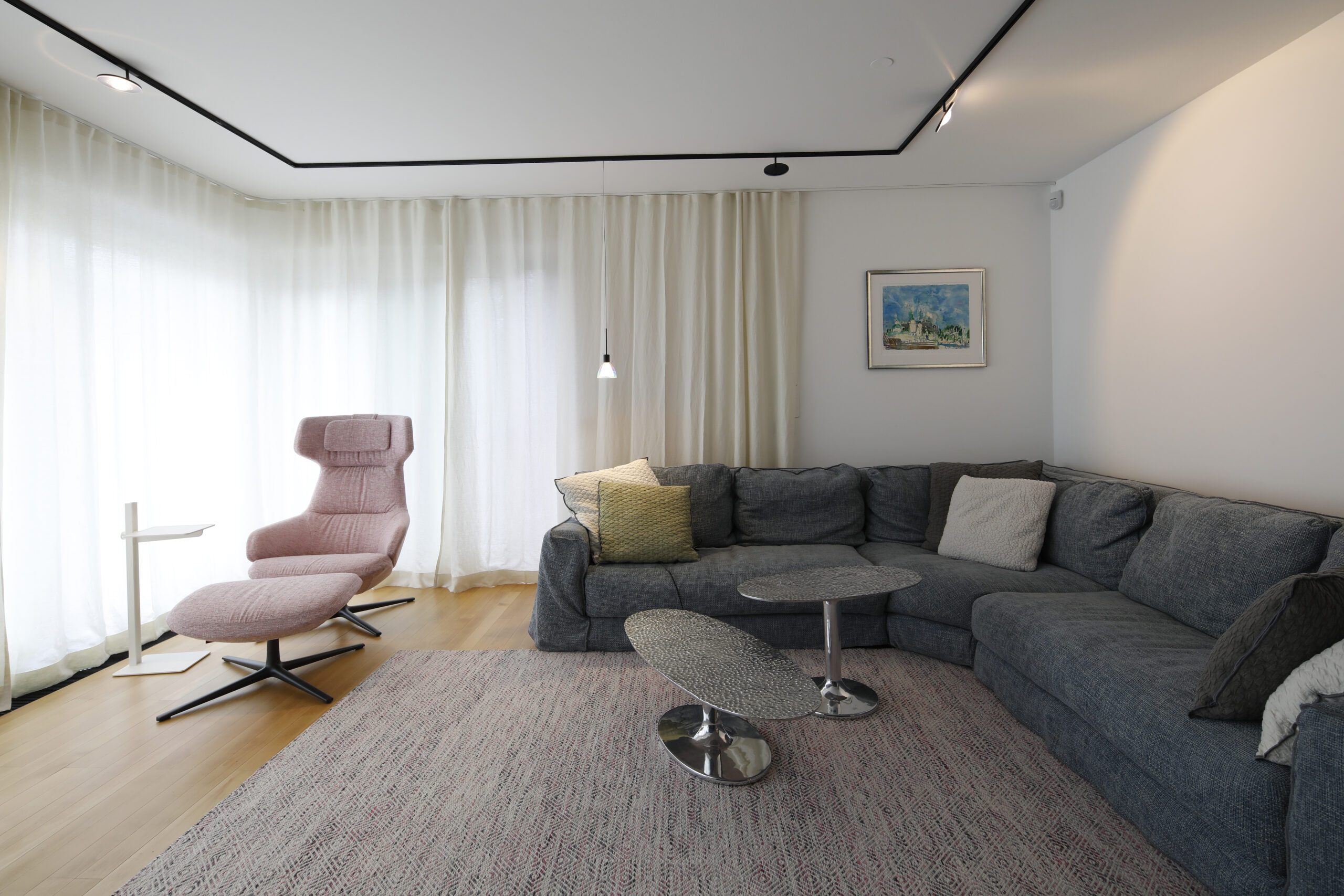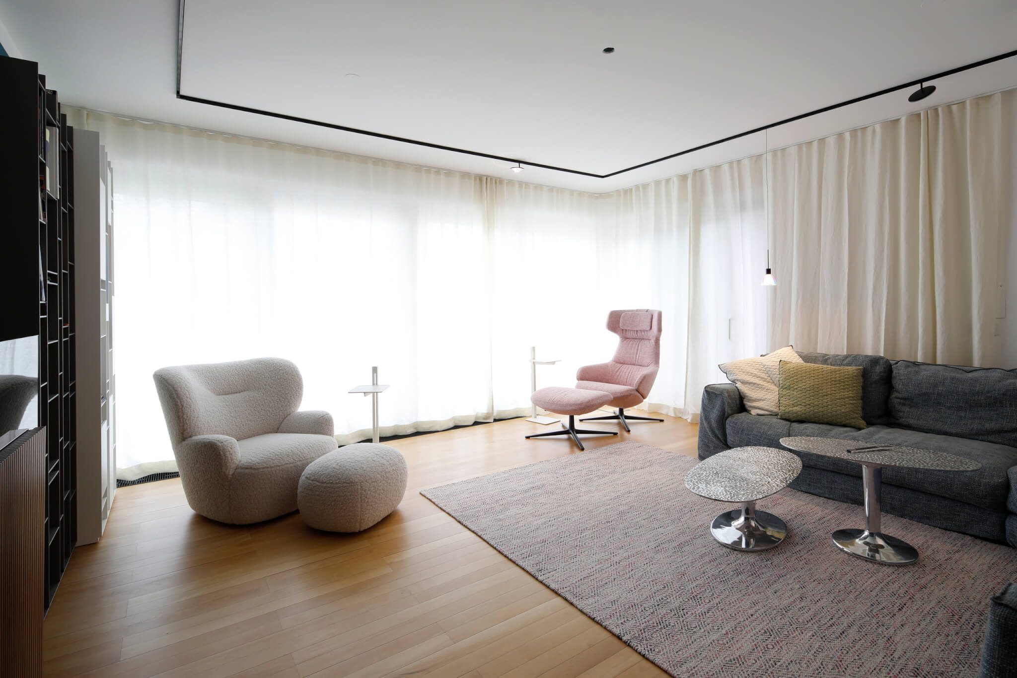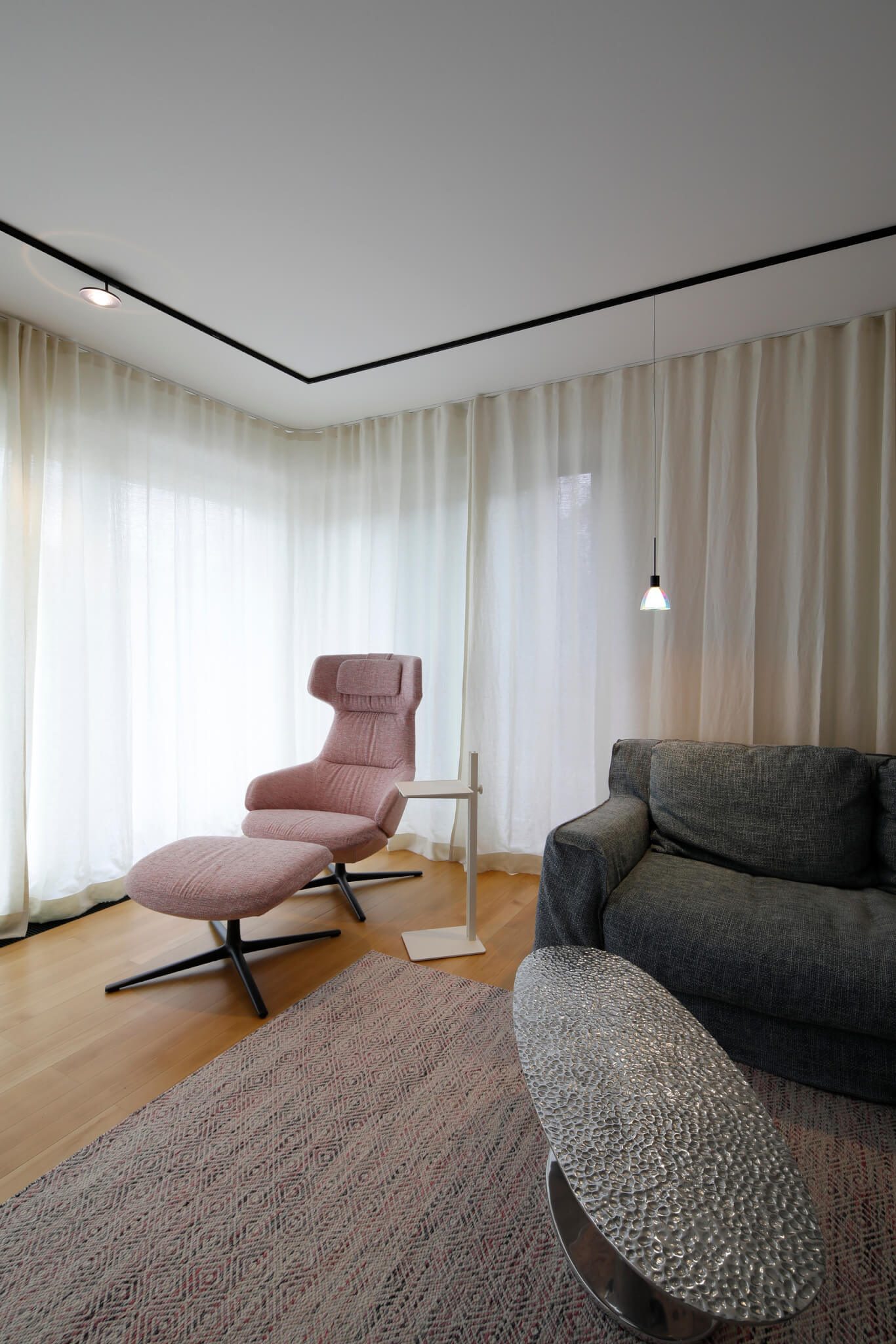 All In Deckenschiene mit Hängeleuchte & Strahler von Bruck, Vorhangschienen Top von LEHA, Vorhang von Nya Nordiska